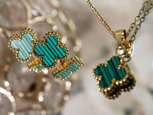 KIT COLLAR CON ARETE - TREBOL TURQUESA CON VERDE