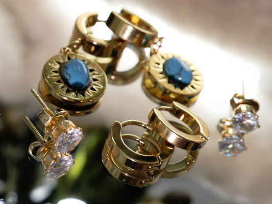 KIT ARETE - MARMOL AZUL PIEDRA/ARO DORADO