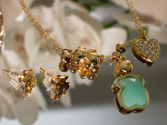 KIT - OSITO TOUS TURQUESA Y DORADO